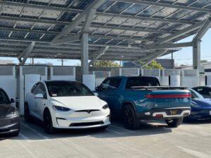 PHOTO Rivian Electric Pickups Charging At Tesla Diner In Hollywood California