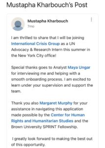 NBA PHOTO Mustapha Kharbouch Joined The ICG As A UN Advocacy And Research Intern by NBATitleChase • December 17, 2025 • Comments Off on PHOTO Mustapha Kharbouch Joined The ICG As A UN Advocacy And Research Intern Mustapha Kharbouch Joined The ICG As A UN Advocacy And Research Intern.