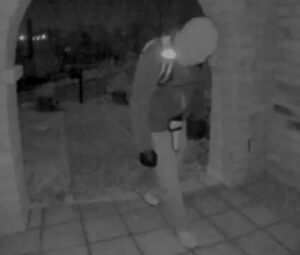 PHOTO Still Shots Ring Doorbell Suspect Complete With A Classic Crisscross Diamond Shape Between Knees Inverted Female Gait